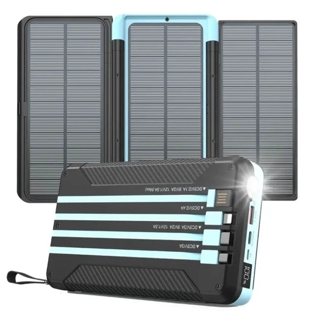 پاوربانک خورشیدی تایپ سی و یو اس بی و لایتنینگ 20 وات 16000 میلی آمپر ساعت پاورولوژی PP070-PPBCHA70-BK