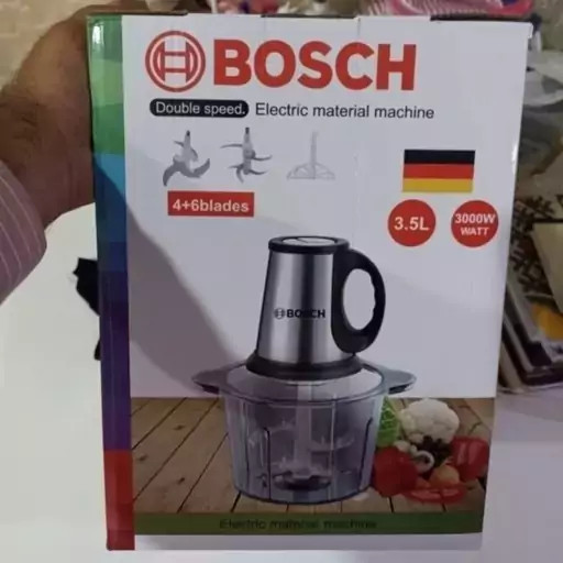 سایر توضیحات:خرد کن مارک بوش از بهترین مواد اولیه با بهترین کیفیت ساخته شده است که یک عمر با خیال راحت با ان کار خواهید کرداین دستگاه دارای دکمه فشاری برای کار کردن دستگاه می باشدو مجهز به سیستم ترموستات است مناسب برای:خرد کردن پیاز ، سبزی ، گوشت ، مرغ ، هویج..... جنس:پیرکس درباره محصول خرد کن 3.5 لیتری مارک بوش ، 3000 وات و دارای یک عدد تیغه شش تایی ، یک عدد تیغه چهار تایی و یک عدد پره ی همزن می باشد