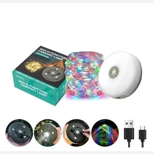ریسه و چراغ کمپینگ شارژی 4 رنگ قلابدار مدل CM