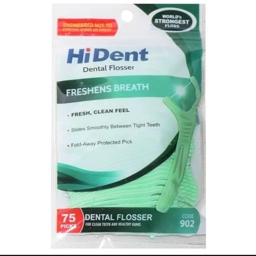 نخ دندان کمانی هایدنت مدل902 بسته 75 عددی نخ دندان هایدنت کمانی دسته دار همراه خلال دندان بسته 75 عددی