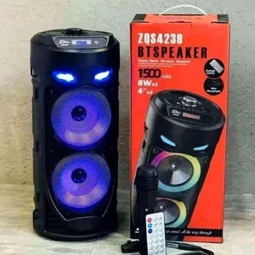 اسپیکر بلوتوثی ZQS-4239 میکروفون دار مقدار: 1 عددی نام : اسپیکر ZQS-4239 امکانات : بلوتوث/فلش/مموری/میکروفون/aux/رادیو/رقص نور سایز بلندگوها : 4×2 اینچ (8 اینچ ) ارتفاع : 43 سانت قدرت : 2000 وات اسمی وزن : 2000 گرم باتری : 1500 میلی آمپر توان خروجی : 20*2 وات فضای پوشش دهی : 100 متر حدودی قابلیت TWS :دارد (جفت کردن دو اسپیکر با هم ) رقص نور : قابل تغییر اکولایزر اتومات : دارد اقلام همراه : کابل میکروفون/ریموت کنترل/بند دوشی/کابل شارژر میزان شارژدهی : 4 الی 6 ساعت تقریبی زمان شارژ : 2 تا سه ساعت با شارژ کمتر از 5 آمپر شارژ شود